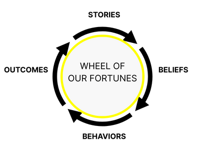Our beliefs aren’t always the truth but stories we tell so much they stick, for better or worse. Our beliefs drive our behaviors, which reap bitter or sweet outcomes. Our outcomes reinforce our stories and the wheel of our fortunes keeps turning into good- or bad-feeling territory.